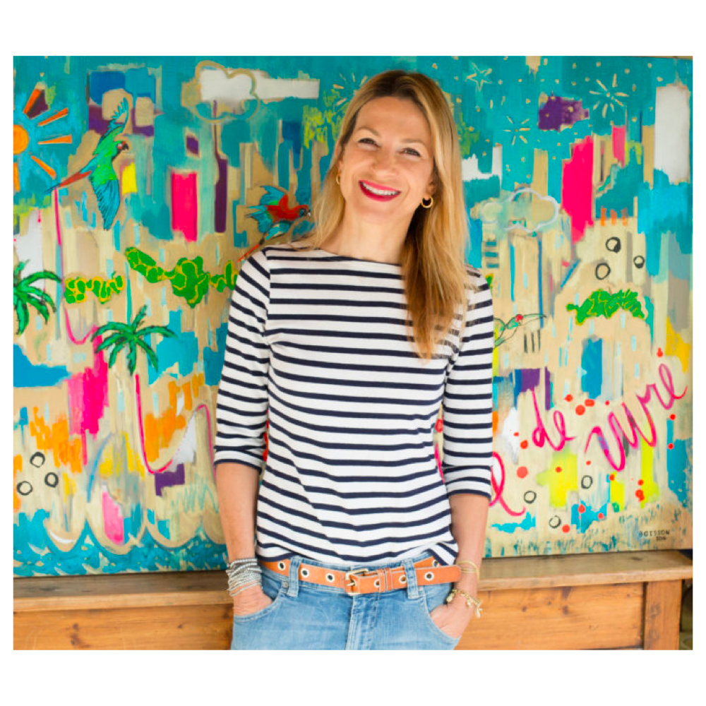 Boisson first took up painting at age 30 when in an effort to cheer her up, a friend in Los Angeles invited her over for a glass of wine. He had laid out some art boards, paintbrushes and paint on the floor, and while they listened to music, Boisson completed a painting that very evening. It was the first time that she had picked up a paintbrush, and she likens the experience to a fish finding water. Since the completion of that first painting—a portrait of two boys—Boisson has dedicated herself to making art.