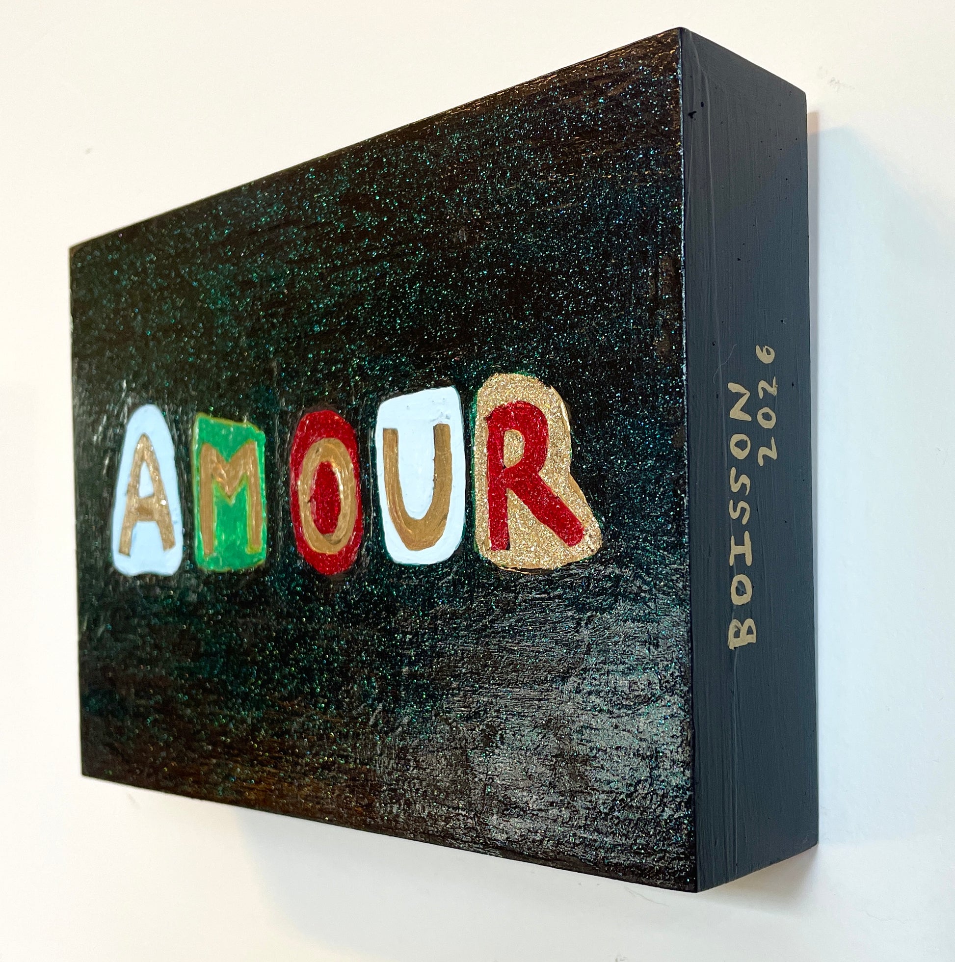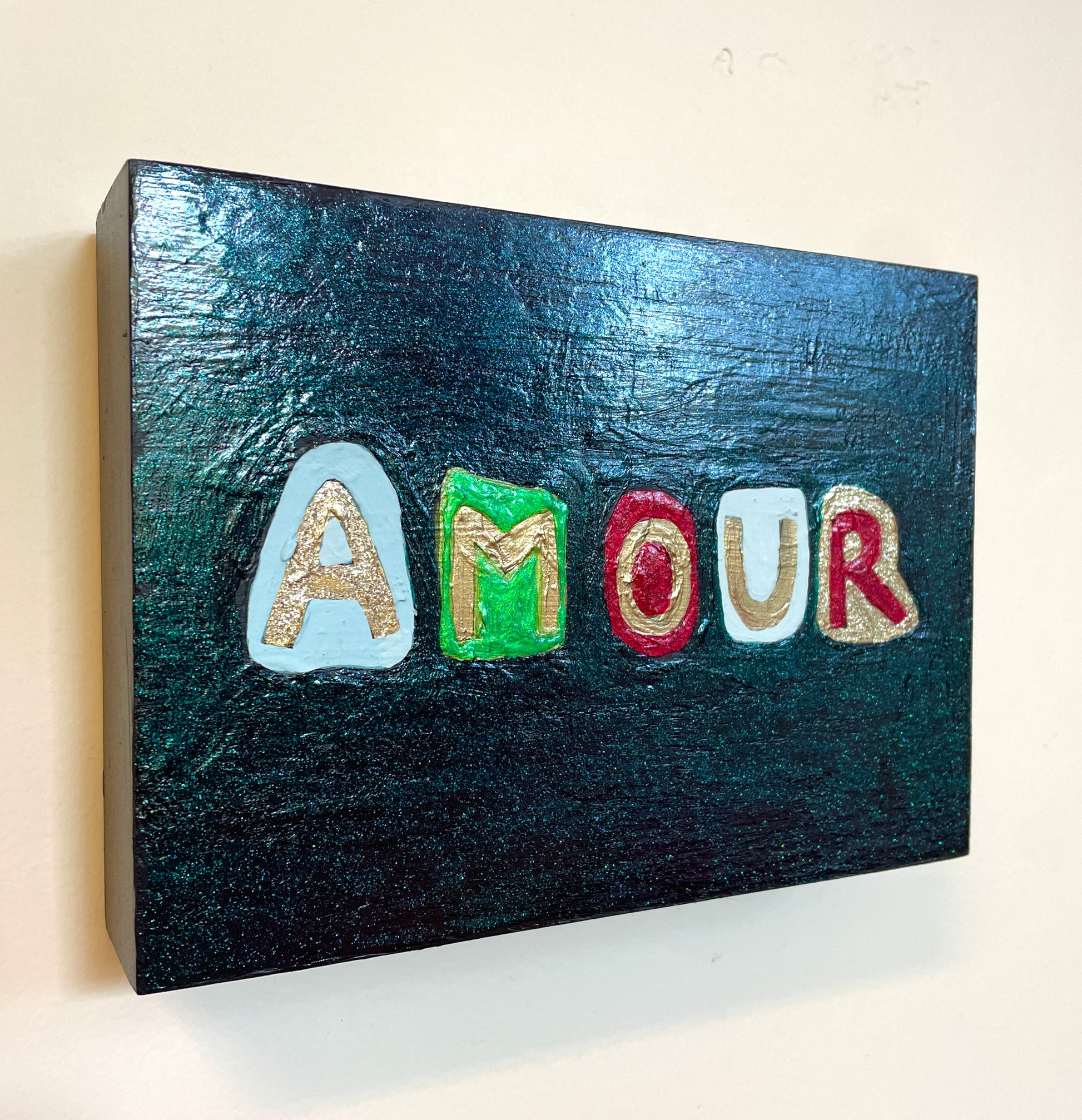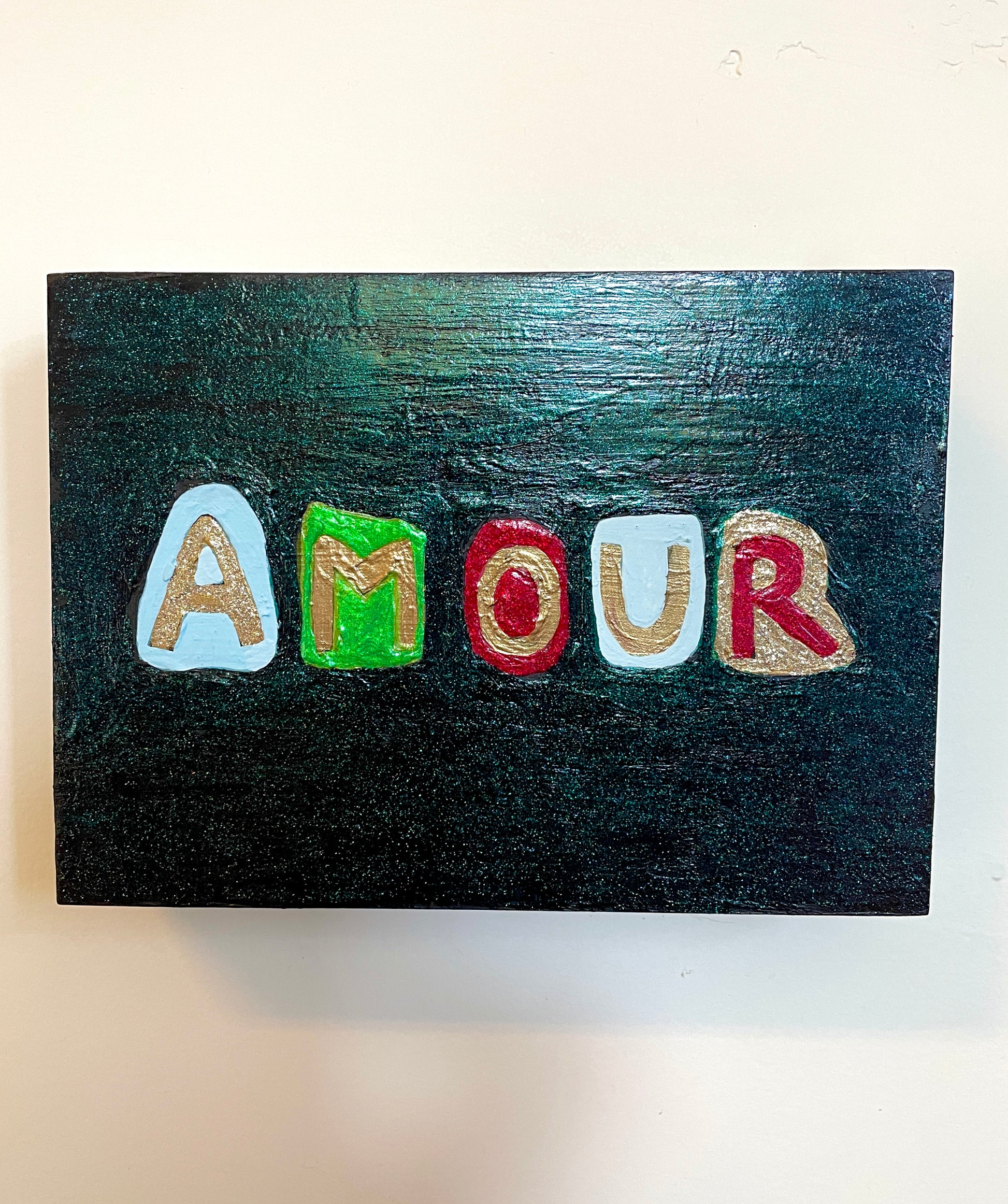 Acrylic and Holographic Enamel on Wood Panel